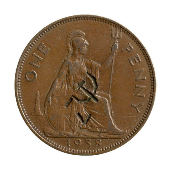03-George VI (1936-52), copper penny, 1938. Hammer and sickle, ‘V’. © Fitzwilliam Museum, Presented by Art Fund