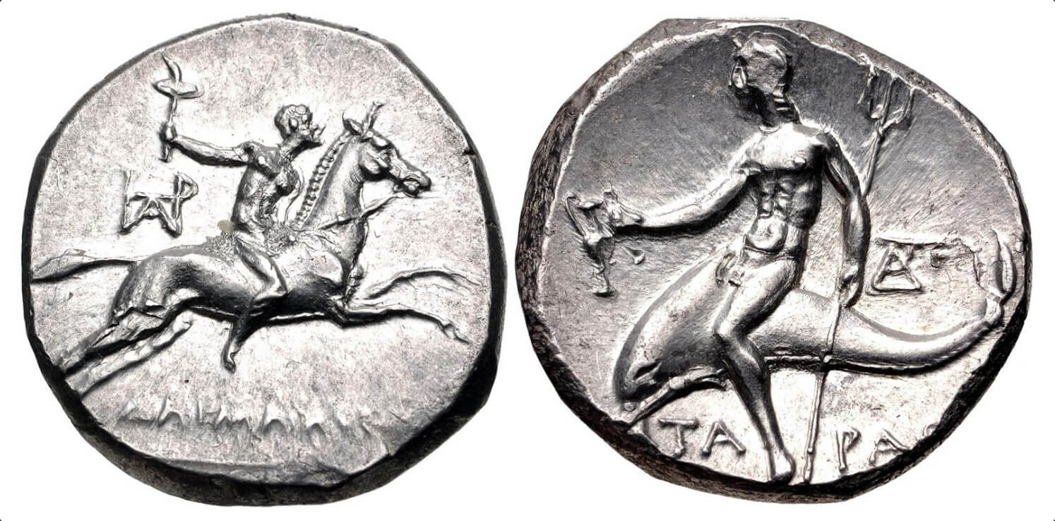 03_Screenshot_2020-01-13 CALABRIA, Tarentum Circa 240-228 BC AR Nomos (19mm, 6 44 g, 9h) Reduced standard Daimachos, magistrat[…]