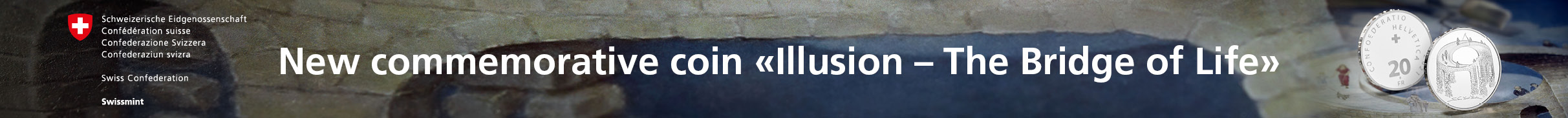Banner, Münzenwoche, Illusion – Viadukt des Lebens, CHF 20.- Silbermünze Ag, 582x44px, Englisch, 20210505, Marketing, Frey