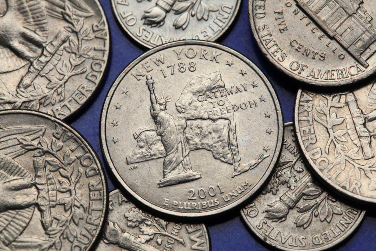 Coins,Of,Usa.,Statue,Of,Liberty,In,New,York,Depicted